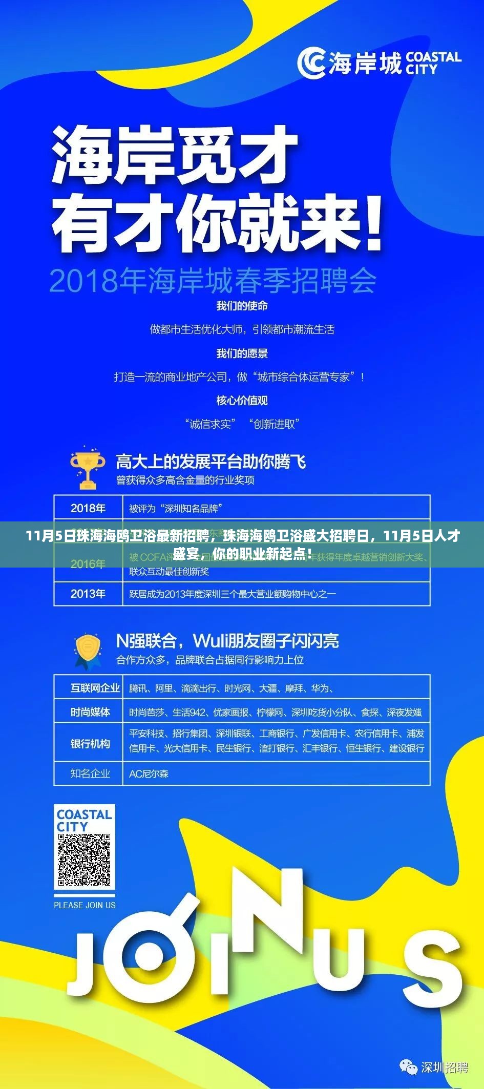 亲爱的求职者们,好消息来啦!11月5日,珠海海鸥卫浴迎来了一场盛大的招聘活动,这里不仅有丰富的职位等你来挑战,更有广阔的职业发展空间和丰厚的福利待遇,想要寻找一个能够实现自己价值、展现才华的舞台吗?那就赶紧跟随我一起了解这场人才盛宴吧!