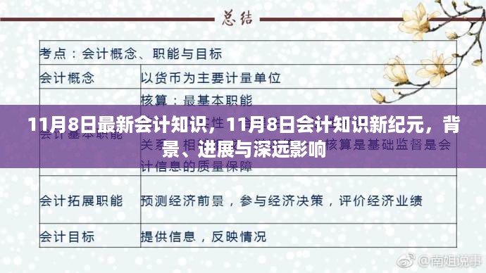 随着秋叶飘落,时光流转至11月8日这一天,会计领域迎来了一场知识的盛宴,这一天,新的会计知识如破壳之鸟,展翅飞翔,宣告着会计领域迈入了一个崭新的时代,本文将详细回顾这一天的背景、重大事件、影响及其在这个特定时代中的地位。