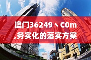 《澳门36249丶C0m务实化的落实方案_UQK4.63.24试点版》是推动澳门经济创新发展的重要途径。我们希望通过该方案的实施,推进社会各界的共同努力,实现澳门经济的高质量发展。