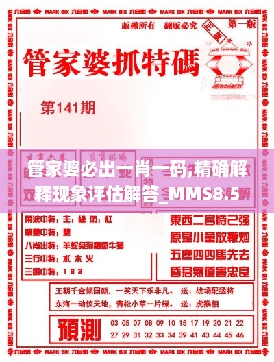 为进一步提升我市彩票文化的传播,增强民众对彩票现象的理解与认知,澳门某事业单位现针对“管家婆必出一肖一码,精确解释现象评估解答_MMS8.59.57确认版”进行专项研究与分析。特此发布以下意见及建议,请各相关单位、个人予以遵循。