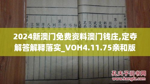 《2024新澳门免费资料澳门钱庄,定夺解答解释落实_VOH4.11.75亲和版》主要涉及以下几个方面: