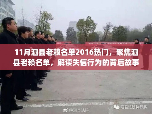 随着社会的不断发展,信用体系建设日益受到重视,在各行各业中,诚实守信成为维护社会秩序和经济稳定的重要基石,失信行为的存在仍然是一个不可忽视的问题,本文将围绕“11月泗县老赖名单2016热门”这一主题展开探讨,深入分析失信行为的成因、影响及应对措施,以期引起社会各界对信用问题的关注。