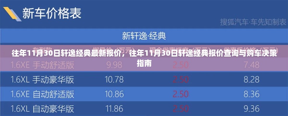 对于想要购买轩逸经典的消费者来说,了解车辆最新报价是非常重要的一环,本文将指导初学者和进阶用户如何通过简单步骤查询往年11月30日的轩逸经典报价,并做出明智的购车决策。