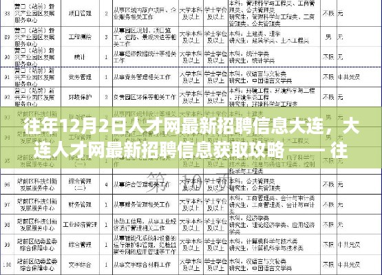 对于想要在大连寻找工作的求职者来说,了解最新的招聘信息至关重要,本文将指导初学者和进阶用户如何通过大连人才网获取最新招聘信息,特别是在往年12月2日的招聘高峰期,完成求职任务。