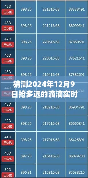 随着移动互联网的普及,滴滴出行已成为我们日常出行的重要选择之一,对于滴滴司机而言,掌握有效的抢单策略,尤其是实时单,是提高收入的关键,本文将指导读者如何猜测并优化在2024年12月9日抢滴滴实时单的距离与策略,帮助初学者和进阶用户更好地掌握这项技能。
