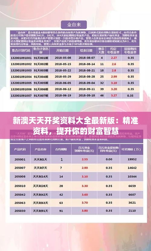 在澳门的繁荣背后,各种财富增长的机遇不断的涌现。对于热衷于投资澳门的人们来说,一个重要的机遇之一就是新澳天天开奖资料大全最新版:精准资料,它为投资者提供了一个全面的开奖数据和财富智慧的提升平台。