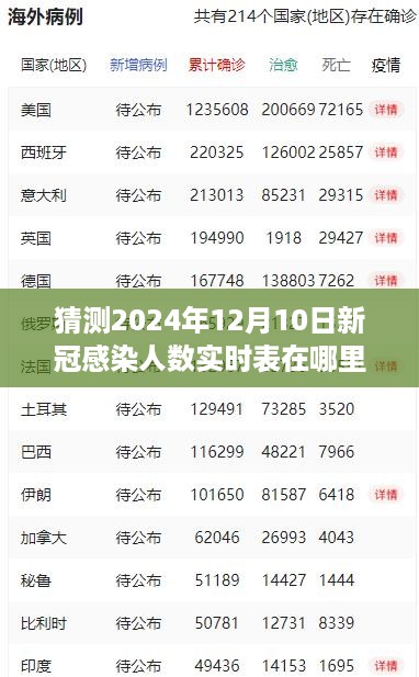 随着新冠疫情的持续发展,公众对于感染人数的关注愈发密切,特别是在未来的日子里,比如2024年12月10日这一具体时点,人们迫切想知道实时的感染人数情况,究竟在哪里可以查到这些实时数据表呢?本文将围绕这一问题展开论述,探讨多方观点,并提出个人的立场和理由。