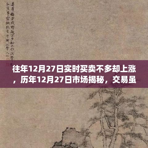 亲爱的小红书们,今天我们来聊聊一个有趣的市场现象——那就是在往年12月27日这一天,尽管实时买卖交易并不活跃,但股市却常常出现上涨行情,让我们一起揭开这个谜团,探寻背后的原因。