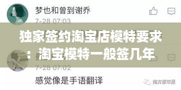 转载请注明来自无忧安证,本文标题:《独家签约淘宝店模特要求:淘宝模特一般签几年 》