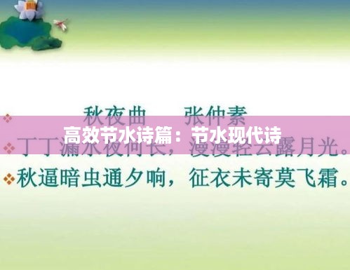 转载请注明来自无忧安证,本文标题:《高效节水诗篇:节水现代诗 》