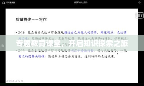 在当今教育体系中,专题教育课堂作为一种新型的教学模式,正逐渐受到广泛关注,它以深入、细致、全面的特点,为学生们提供了一个全新的学习体验,专题教育课堂不仅有助于提升学生的学习兴趣,还能够帮助他们更好地理解和掌握所学知识,本文将深入探讨专题教育课堂的重要性、实施策略以及所带来的影响。
