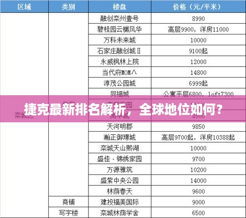 捷克共和国,简称捷克,作为欧洲中部的一个国家,近年来在经济、教育、科技、文化等领域取得了显著的发展成果,根据最新的数据和趋势,捷克在全球的排名如何呢?本文将就此进行详细的解读和分析。