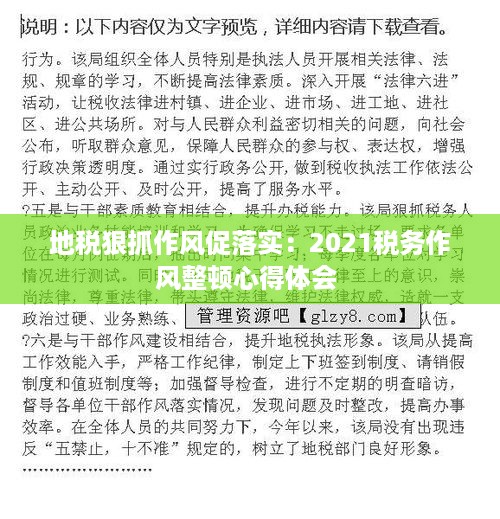 转载请注明来自无忧安证,本文标题:《地税狠抓作风促落实:2021税务作风整顿心得体会 》