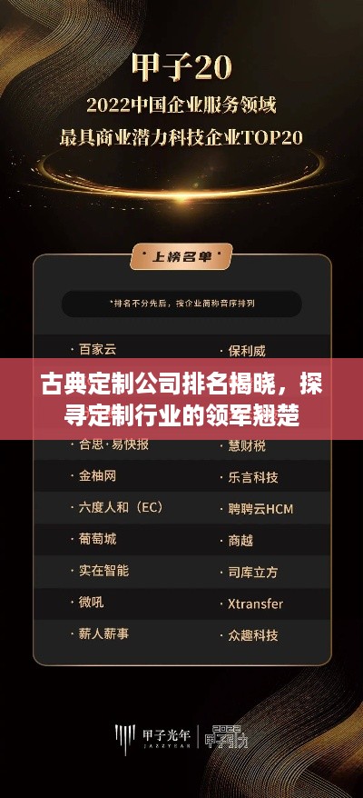 随着时代的变迁,人们对于生活品质的追求越来越高,个性化需求也日益增长,在这样的背景下,古典定制公司逐渐崭露头角,以其独特的设计风格和精细的工艺技术赢得了广大消费者的青睐,本文将为你揭示古典定制公司的排名,带你领略定制行业的翘楚。