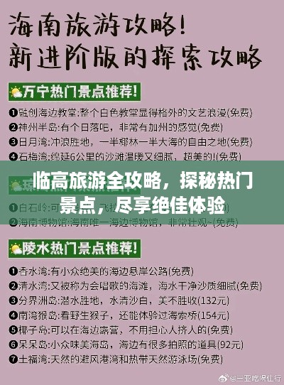 临高县,位于海南岛的西北部,是一个充满自然美景和人文风情的地方,这里拥有得天独厚的自然资源和美丽的海滨风光,吸引了无数游客前来探访,本文将为您带来一份详尽的临高旅游景区攻略,带您领略这个美丽地方的魅力。