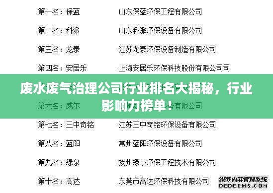 随着环境保护意识的日益增强,废水废气治理已成为社会关注的焦点,众多治理公司纷纷涌现,致力于提供高效的解决方案,以改善环境质量,本文将探讨当前市场上的废水废气治理公司排名及其行业影响力。