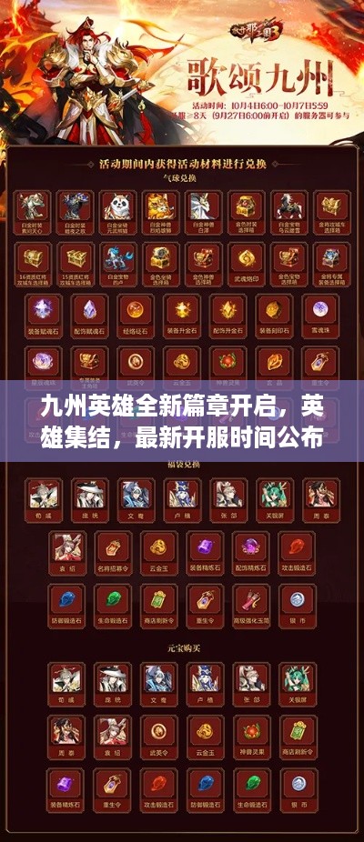 随着游戏产业的飞速发展,众多精彩纷呈的网络游戏不断涌现,对于热爱游戏的玩家来说,最新消息的开服时间无疑是一个关注的焦点,本文将围绕“九州英雄开服时间最新版”这一主题,为广大玩家带来详尽的信息和期待。