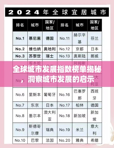 随着全球化的不断推进,城市发展日新月异,各大城市为了提升自身竞争力,纷纷在基础设施建设、公共服务、经济活力等方面下功夫,为了更好地了解全球城市的发展状况,世界城市发展指数排名应运而生,本文将围绕这一主题展开,探讨其背后的含义及启示。