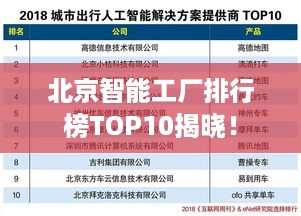北京智能工厂排行榜TOP10揭晓!