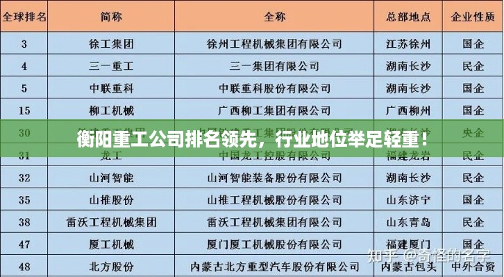 衡阳,作为湖南省的重要工业城市,一直以来都是中国制造业的繁荣之地,在众多产业中,衡阳的重工业尤为突出,其中衡阳重工公司更是行业内的佼佼者,本文将探讨衡阳重工公司在行业内的排名及其重要地位。