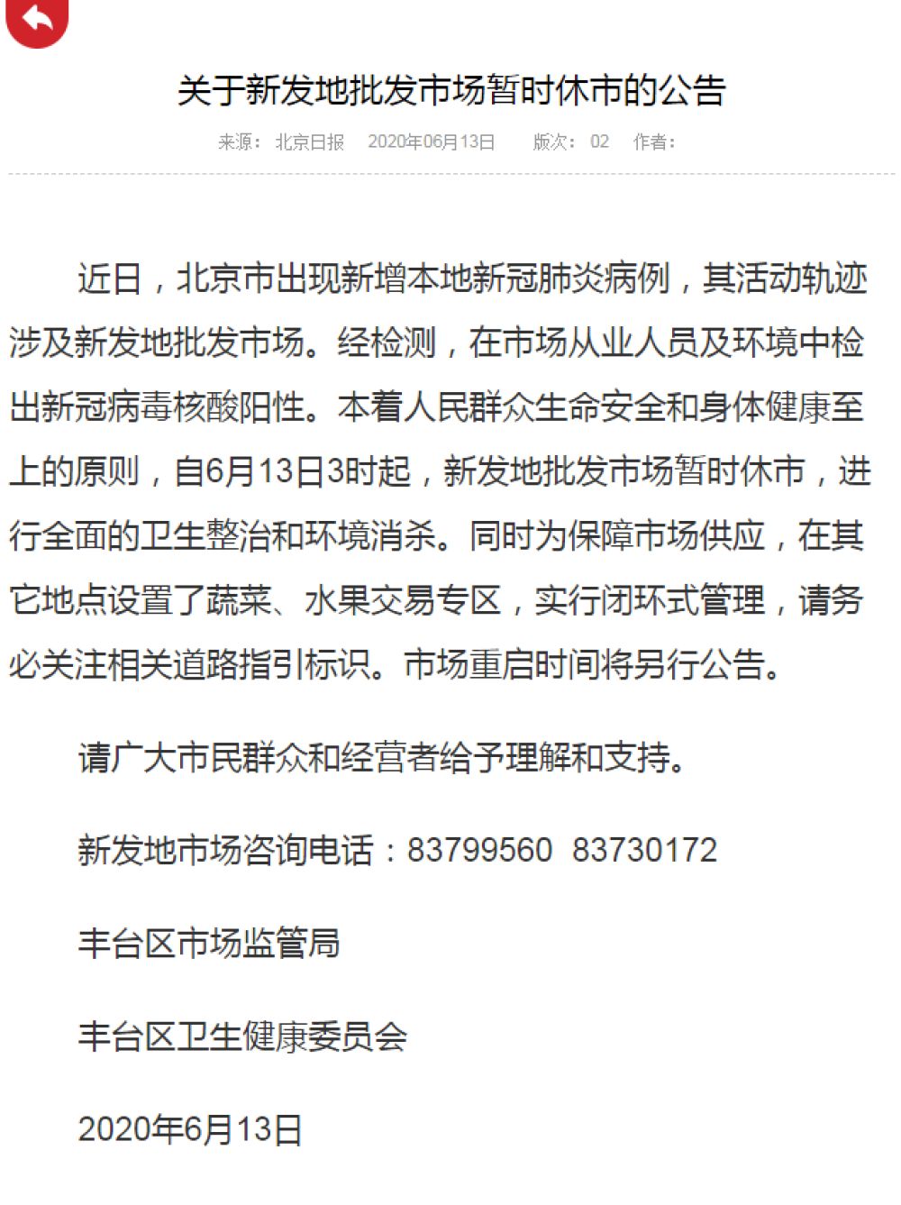 北京新发市场最新疫情概况